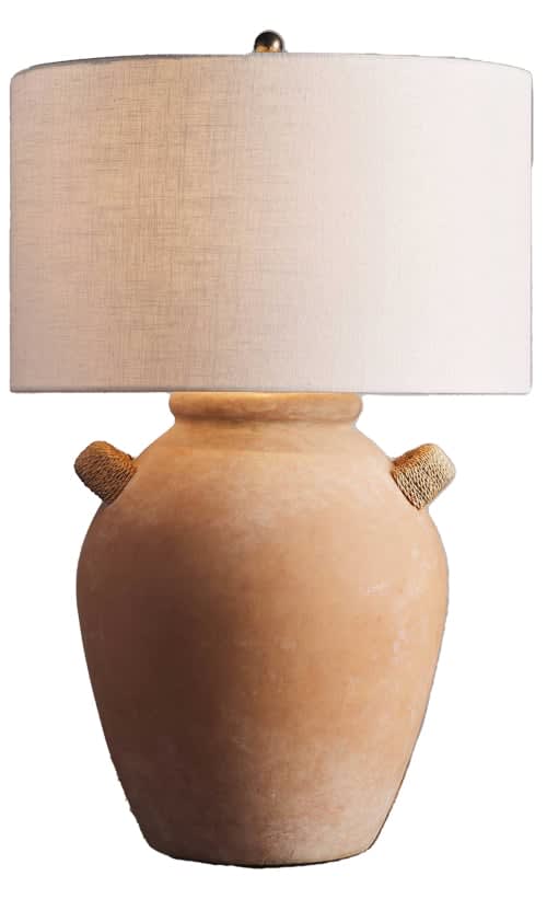 Crafted in terracotta with a hand-painted whitewashing for a naturally distressed look and carefully wrapped in rattan, Matilda makes the perfect organic-yet-simple accent. Matilda Table Lamp, $189,