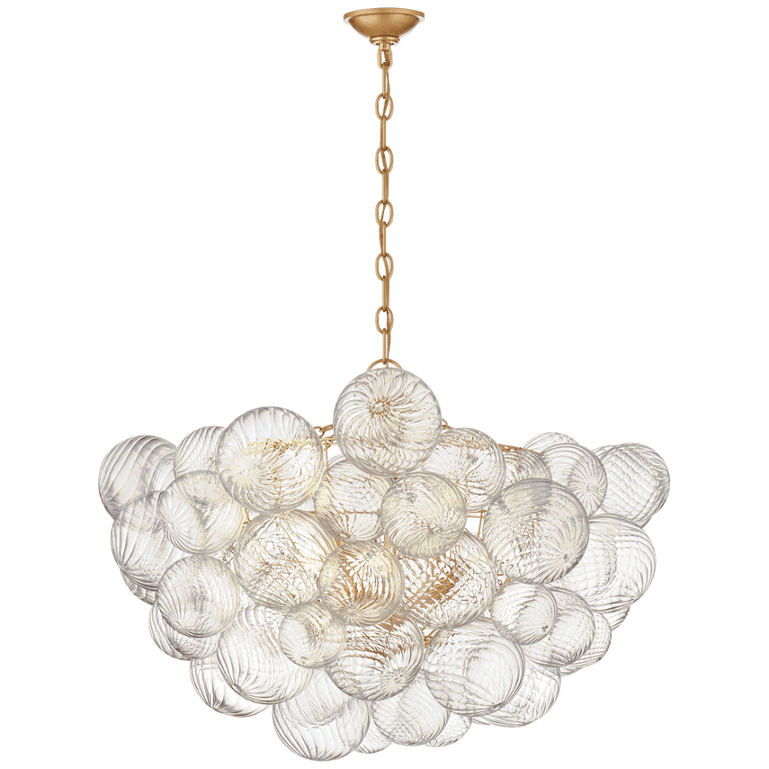 Light shimmers through multiple swirled glass orbs attached to metal baskets in this chandelier by Julie Neill. Talia Large Chandelier, $2529, visualcomfort.com