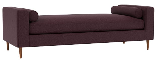 A sleek and soft lounger that won’t impede any views, ideal for sitting a spell in front of a fireplace, window, or at the foot of a bed,. Opt for a luxe fabric like velvet or chenille. Sloan Daybed in Eggplant, $1,195,