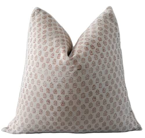 A beautifully hand-blocked Indian pattern atop a luxe Belgian linen fabric. Soft and subtle, this pillow brings just a dose of pattern. Ayo-Indian Hand Block Linen Pillow Cover, $55,