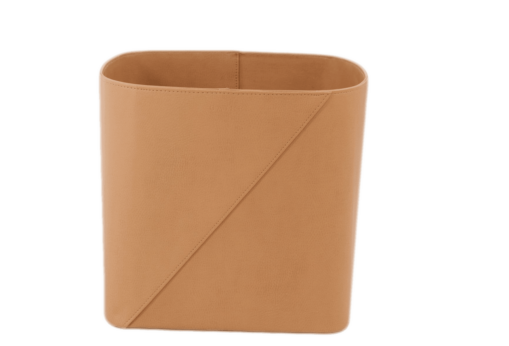 100% vegan leather, ethically sourced and responsibly made. Large Storage Bin in Camel, $99;