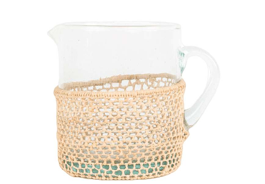 Handmade by fair-trade artisans in Morocco from recycled glass. Woven Pitcher, $62;